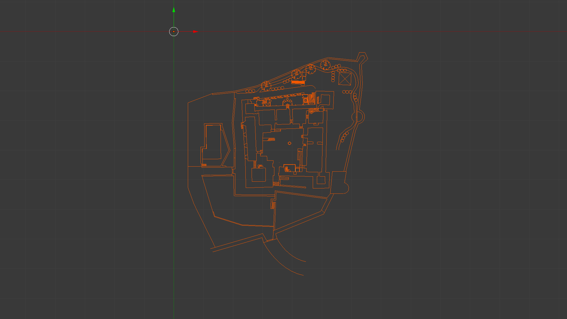 Il primo passo per dare vita a questo progetto è stato quello di reperire i file CAD della Rocca di Narni che una volta importati in Blender hanno dato vita alle piantine di tutti i piani della rocca. Abbiamo poi dovuto pulire e consolidare questi file composti unicamente di linee segmentate.
