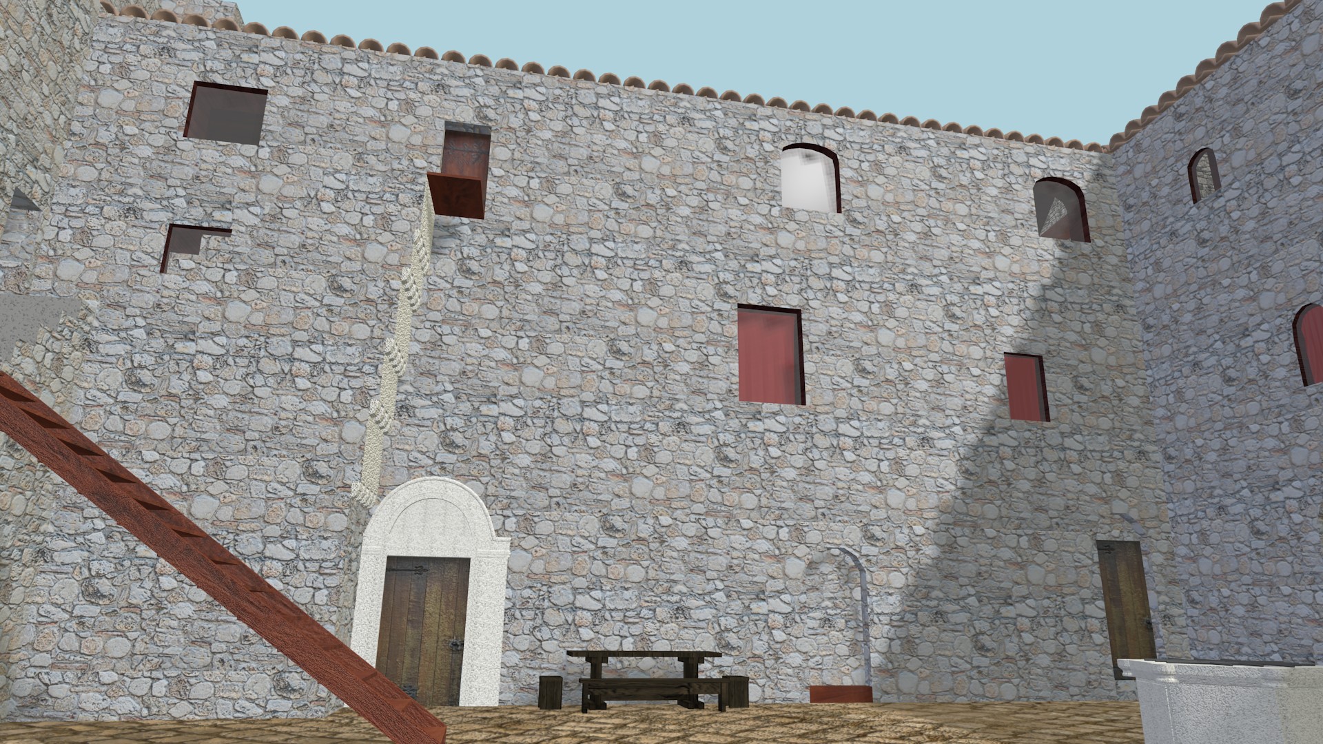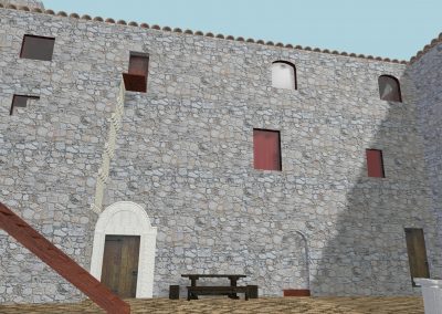 Una volta ottenuto il modello della rocca in tutte le sue parti, oggettistica compresa, siamo passati alla definizione di materiali e texture di ogni oggetto, utilizzando a tale scopo tre diverse texture: una per il colore, una per la riflessione della luce e una per lo spessore e l’estrusione.